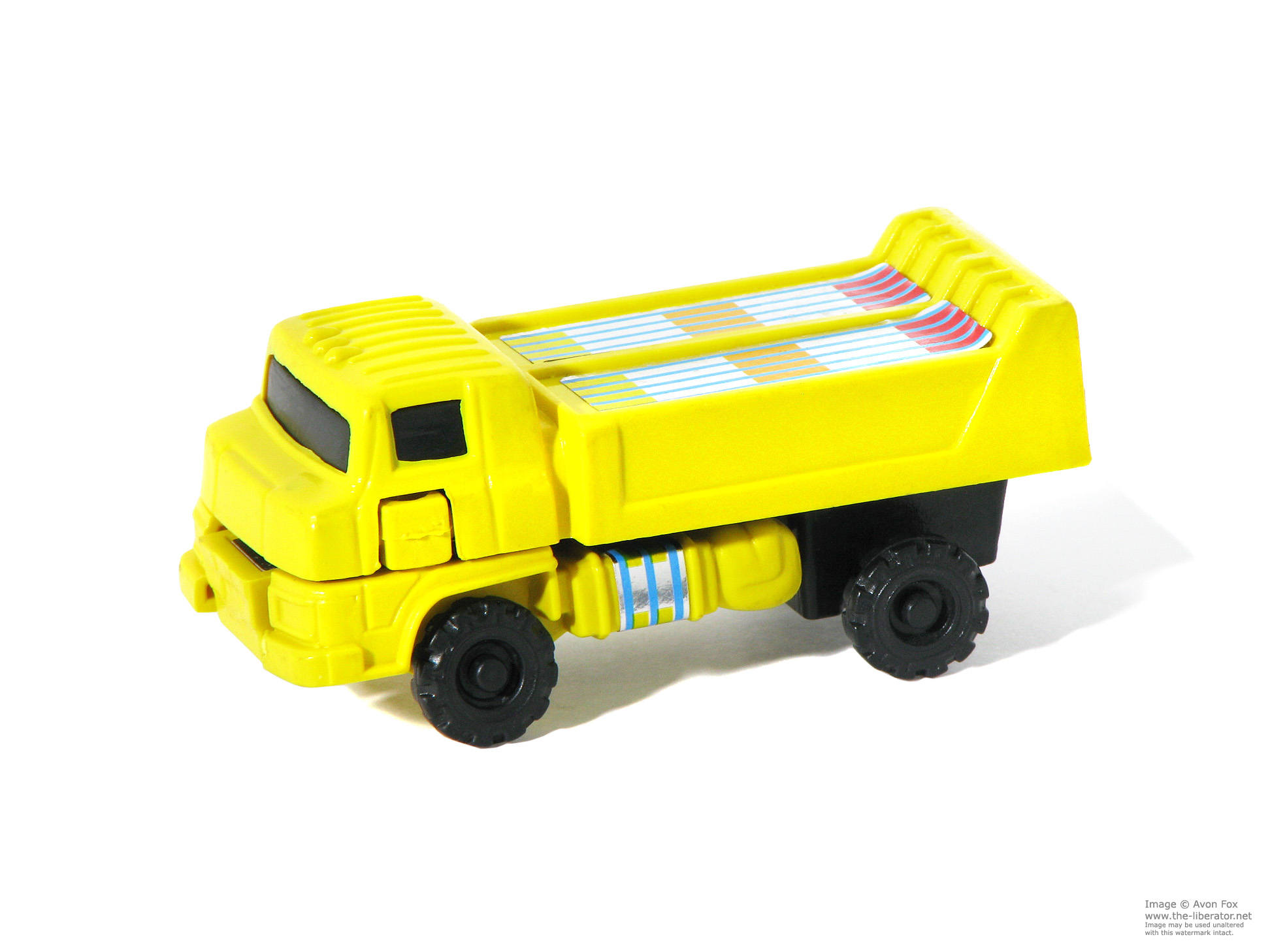 The Dump Truck is one of four models released as part of this unlicensed, bootleg offering from Spanish company Gisima S.L.; Sociedad Limitada / limited liability company. Of the four, the dump truck is the closest match to the original MC Toy figure; even more so in vehicle mode.