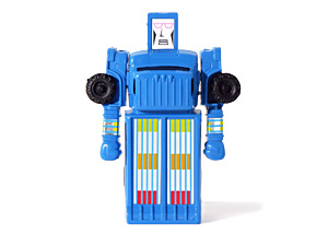 They're endearingly goofy, compounded by the MC Toy faces having been replaced with foil paper stickers. They also all have new, brightly coloured foil body stickers. None of this Gisima line retained the pull back motors MC Toy's figures were best remembered for and simply stand up on the back panel of the vehicle.