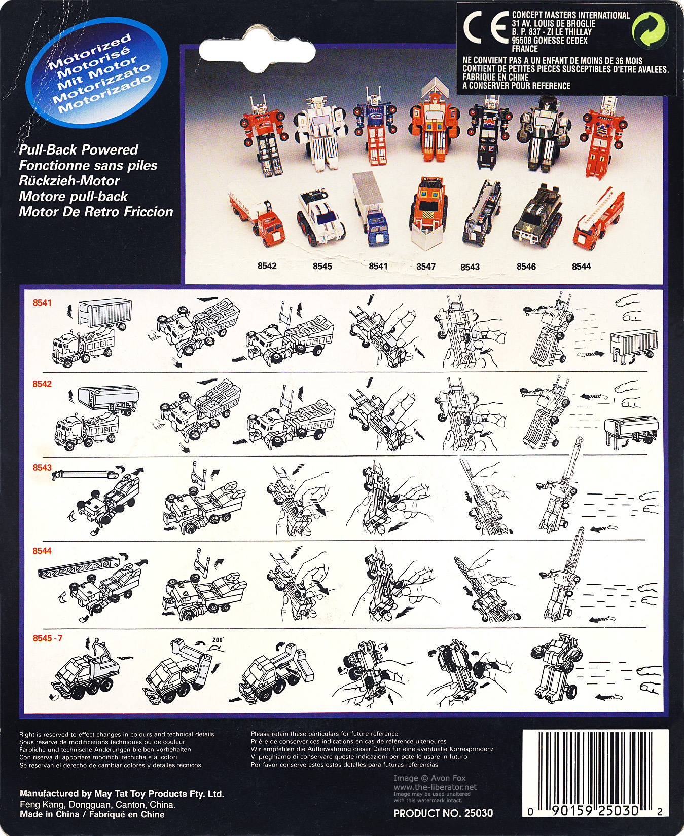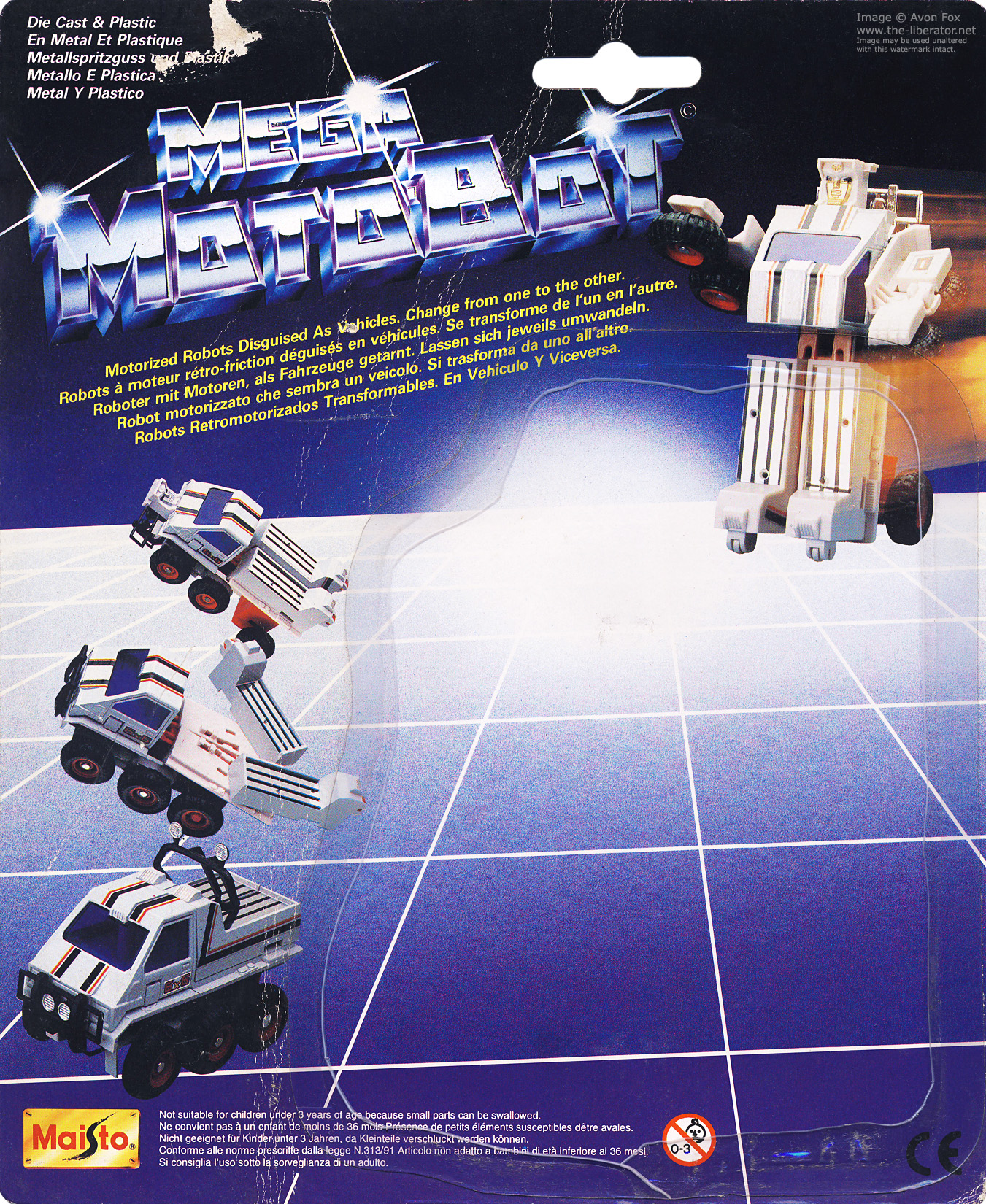 The tag line on the MC Toy cards was updated for the Maisto run from, 'A motorized robot disguised as a vehicle' to the less English clunky, 'Motorized robots disguised as vehicles'.