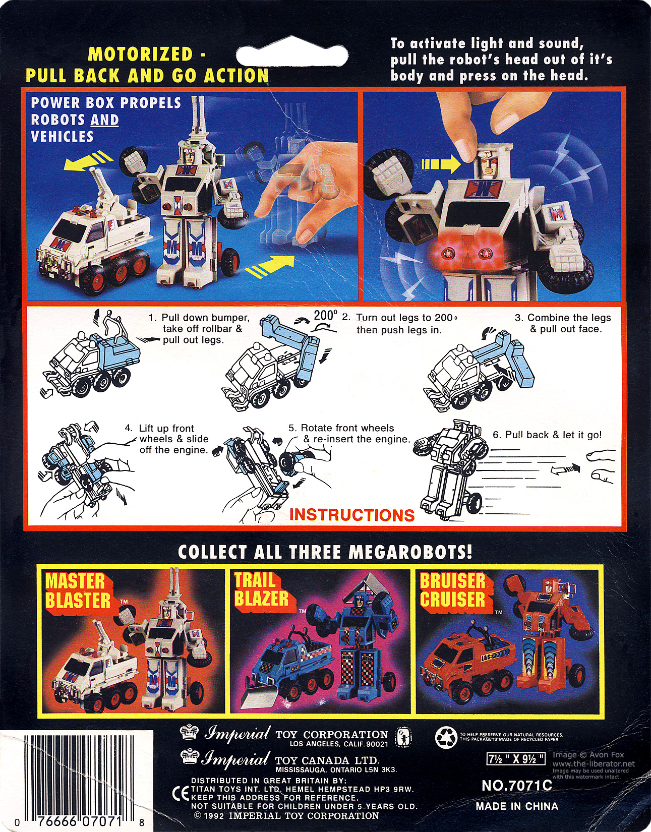 MegaRobot (Light Sound) is an extension with extra gimmick of Imperial Die-Cast's 1993 SupeRobot line (see separate page this site) that in itself was a re-re-distribution of MC Toy's original models now in new colours. The line was wholesaled direct from Imperial Die-Cast in the United States and Canada, while Titan Toys INT LTD were responsible for the United Kingdom distribution.