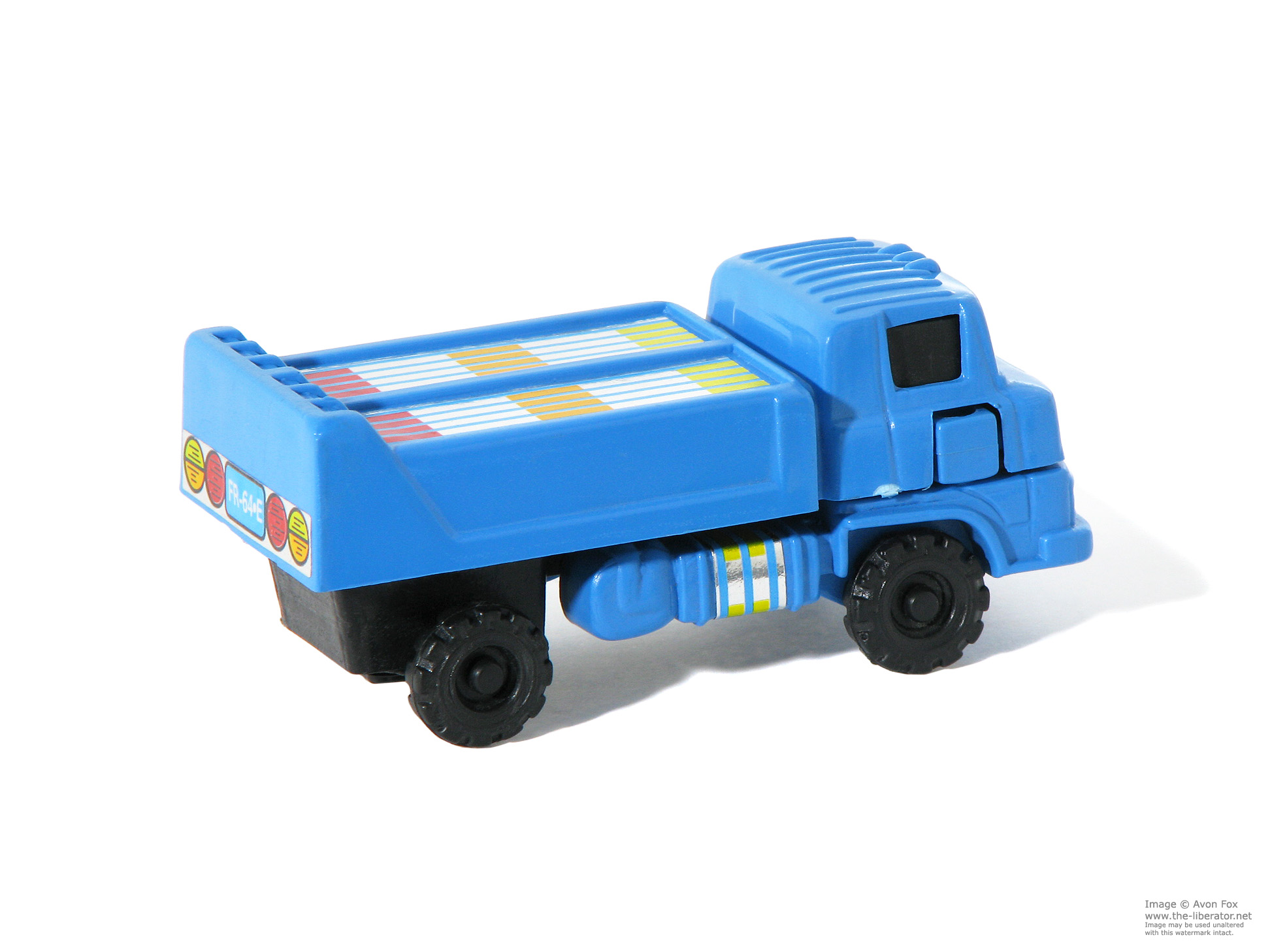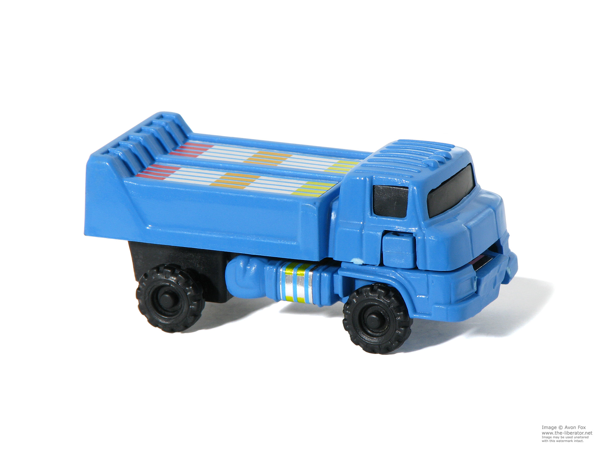 The Dump Truck is one of four models released as part of this unlicensed, bootleg offering from Spanish company Gisima S.L.; Sociedad Limitada / limited liability company. Of the four, the dump truck is the closest match to the original MC Toy figure; even more so in vehicle mode.