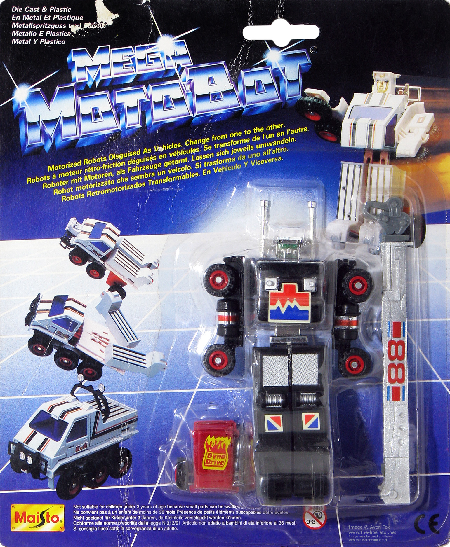 The tag line on the MC Toy cards was updated for the Maisto run from, 'A motorized robot disguised as a vehicle' to the less English clunky, 'Motorized robots disguised as vehicles'.